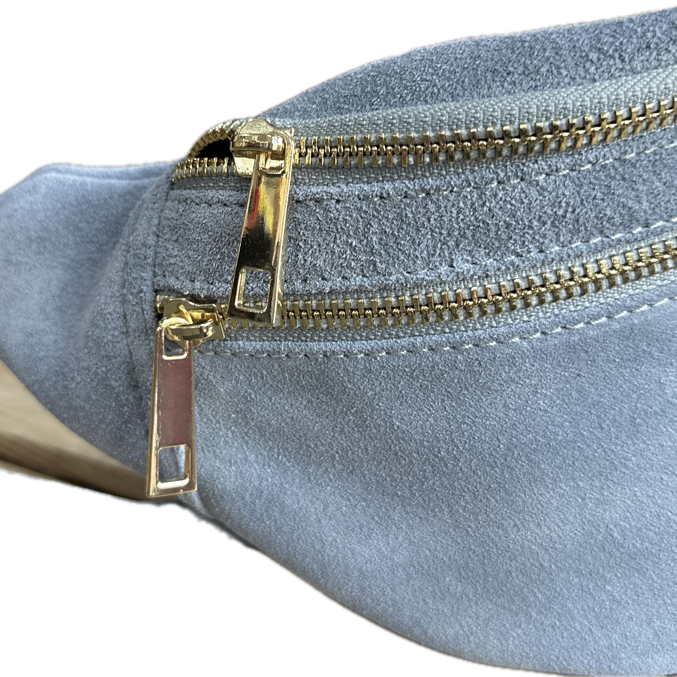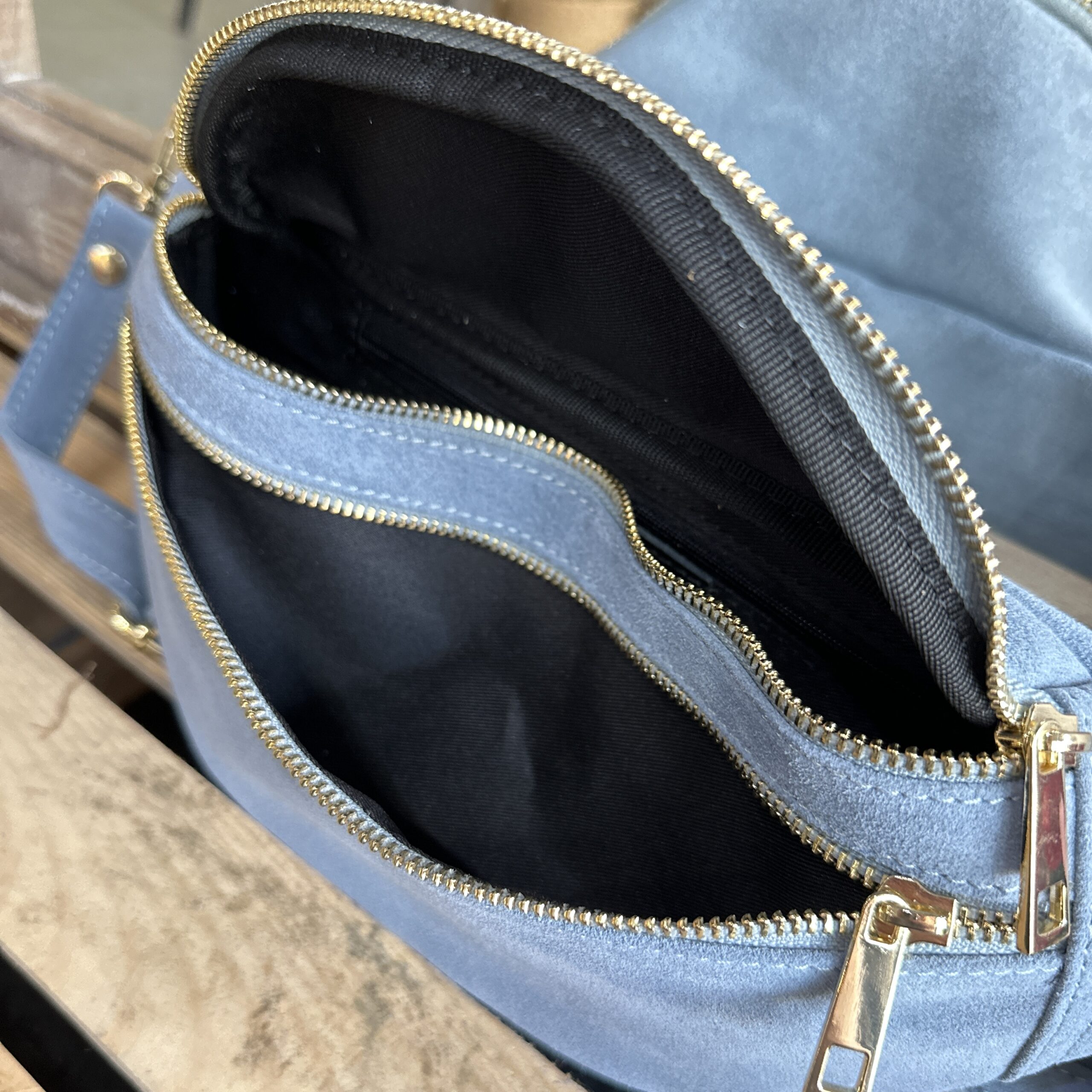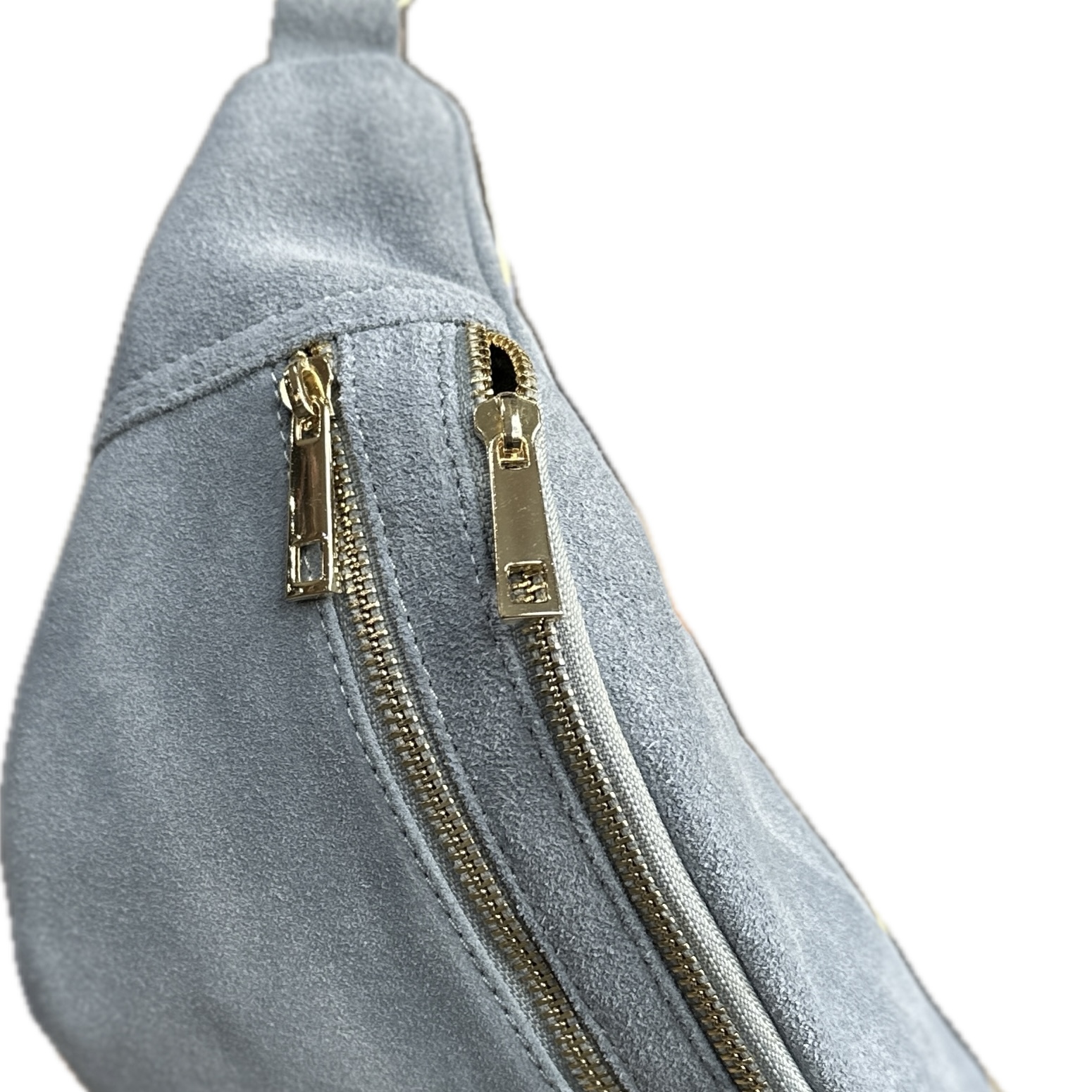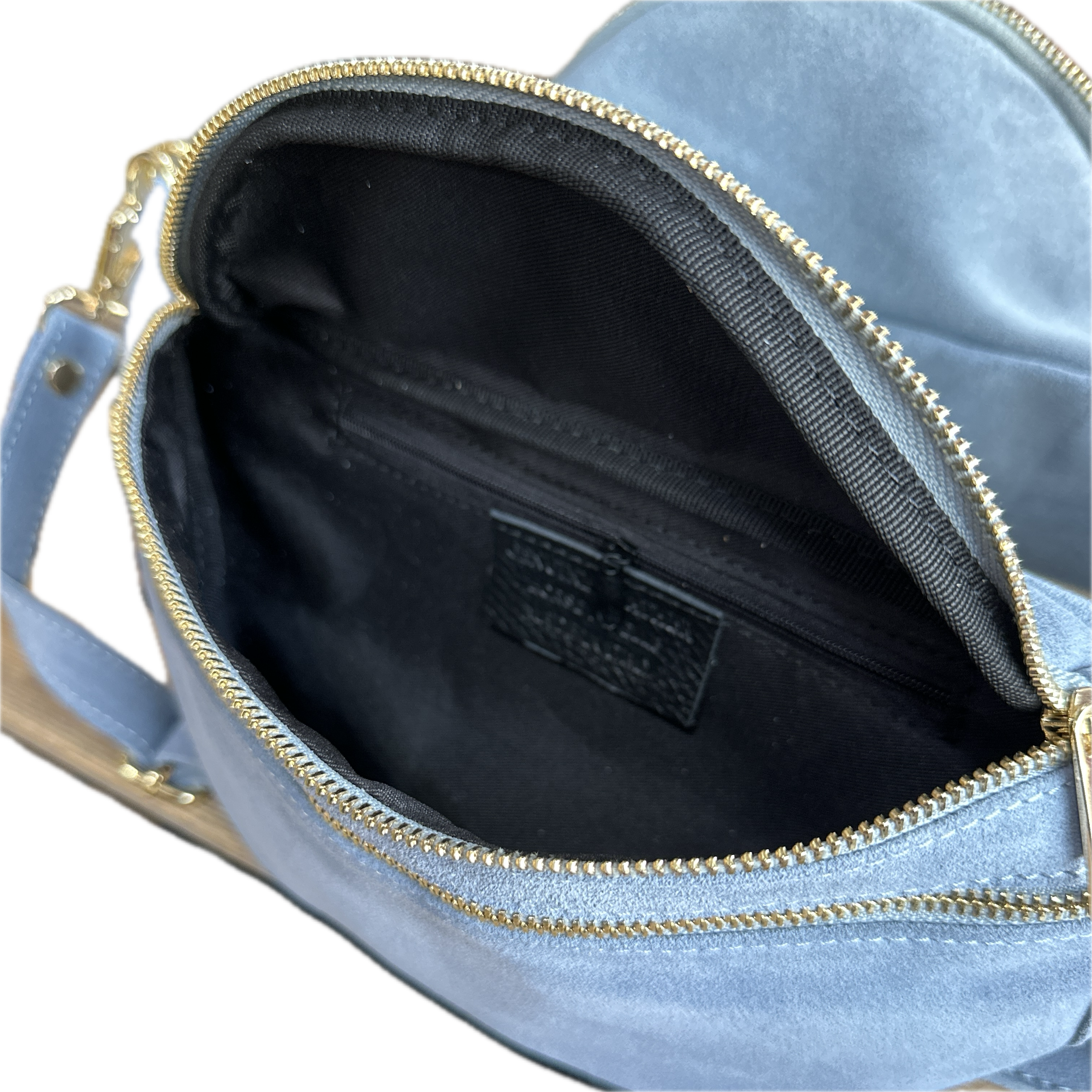 Nerka wykonana ze skóry zamsz. Posiada dwie kieszenie, obie zapinane na suwak. Wewnątrz posiada jedną komorę oraz małą kieszonkę zapinaną na suwak.