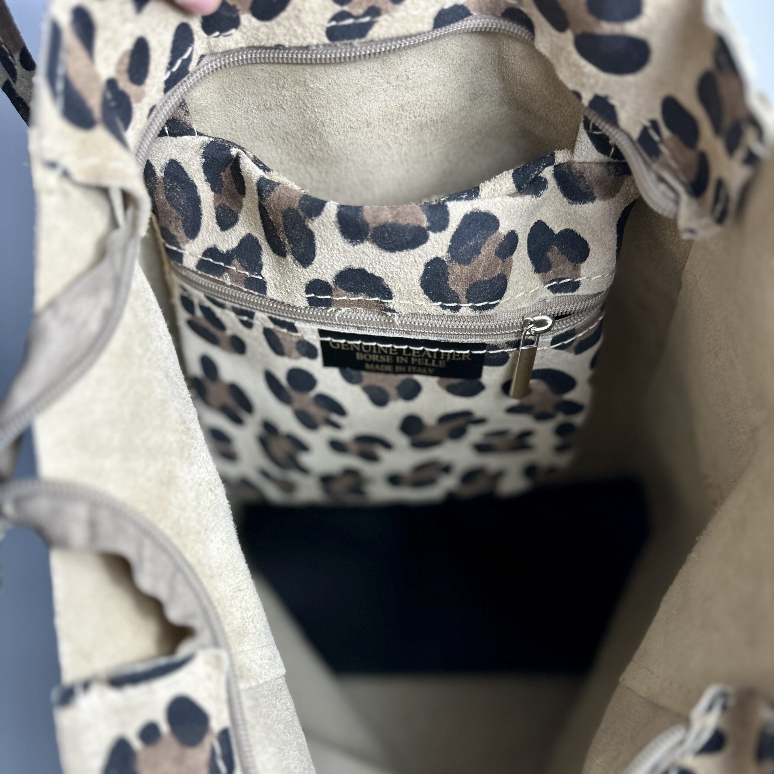 Torba wykonana z włoskiej skóry naturalnej. Zapinana na suwak i przewiązywana ozdobnym sznureczkiem. Wewnątrz wszyta mała, praktyczna kieszonka również zamykana na suwak.